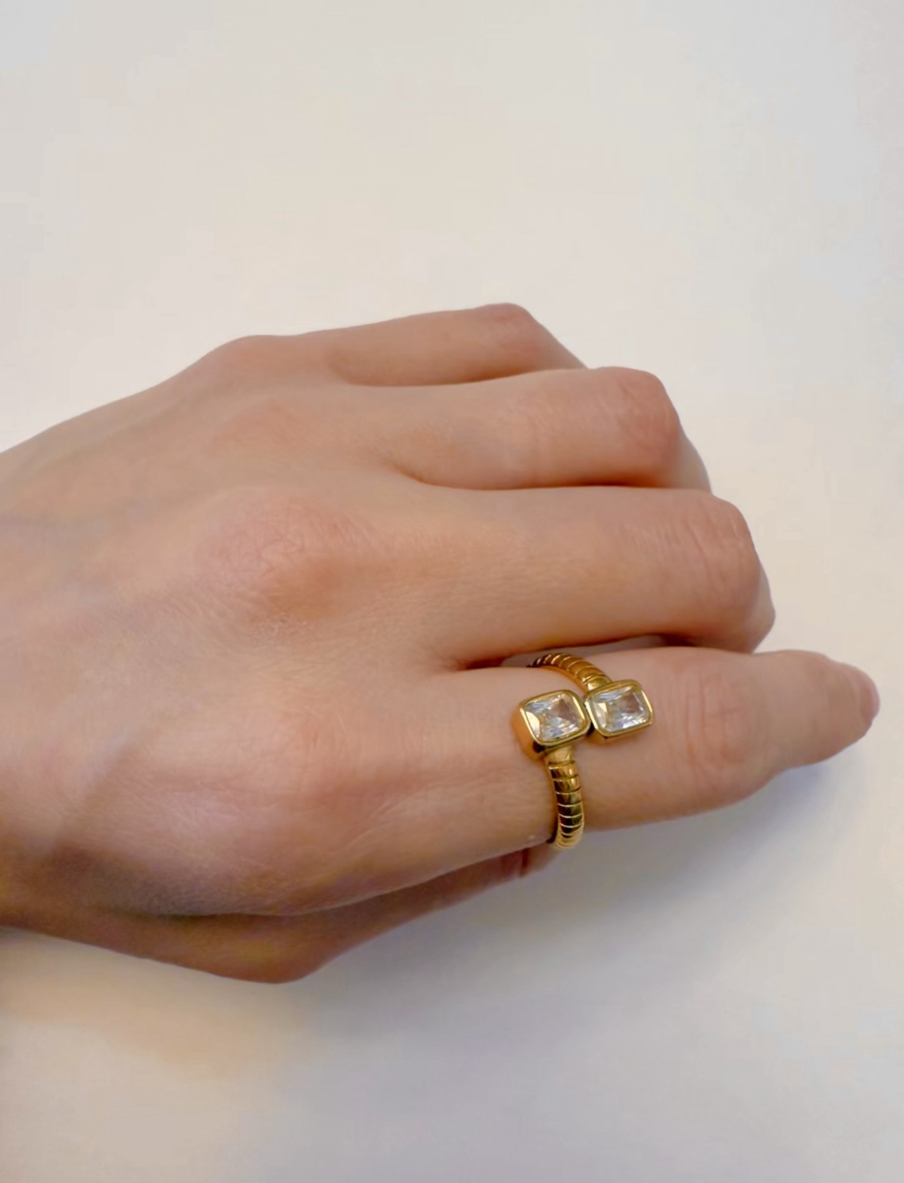 A chic adjustable gold-plated stainless steel ring featuring a miniature belt buckle design. “Loop” combines modern sophistication with playful detail, wrapping elegantly around your finger. Perfect for stacking or wearing solo as a statement piece with a subtle twist.